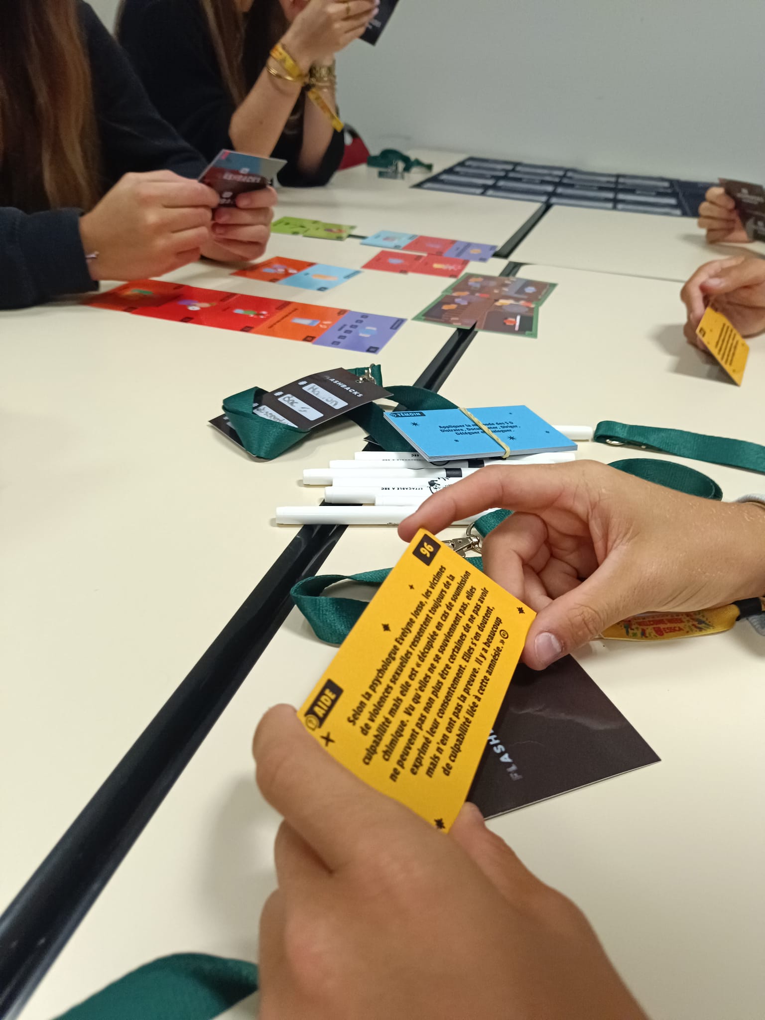 Flashbacks est un jeu collaboratif où 2 à 8 étudiants doivent reconstituer le déroulé d’un événement à partir de 9 scénarios inspirés de situations vécues : consommation de substances, violences, bizutage, risques routiers, comportements dangereux en stage ou en contexte festif.